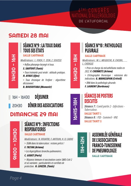 9H00 - 10H30 Modérateurs : N. ROUATBI, F. ANTOUN, H. EL CADHI 11H-12H ASSEMBLÉE GÉNÉRALE