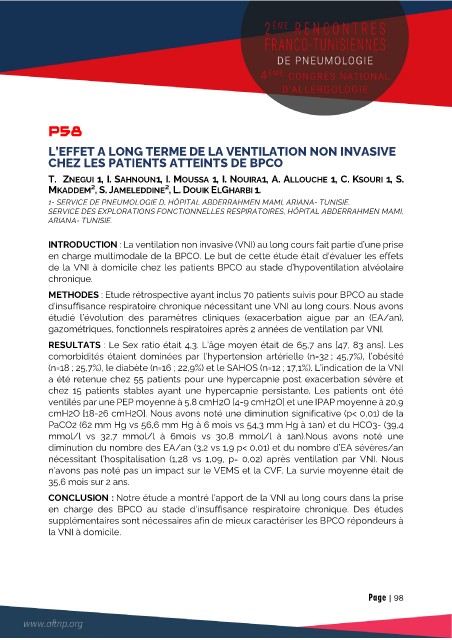 T. ZNEGUI 1, I. SAHNOUN1, I. MOUSSA 1, I. NOUIRA1, A. ALLOUCHE 1, C. KSOURI 1, S.