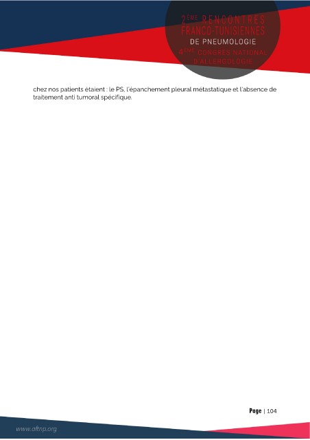 chez nos patients étaient : le PS, l’épanchement pleural métastatique et l’absence de traitement anti tumoral spécifique. Page | 104