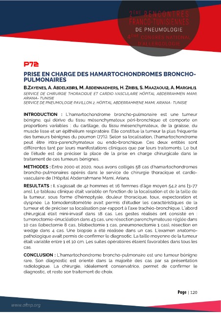 des tumeurs bénignes du poumon (77%). Selon sa localisation, l’hamartochondrome