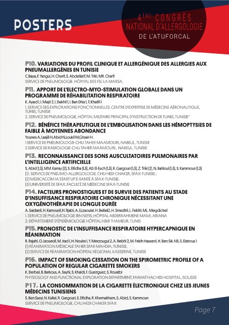 (1) : SERVICE DE PNEUMO-ALLERGOLOGIE, CHU HEDI CHAKER, SFAX-TUNISIE ;