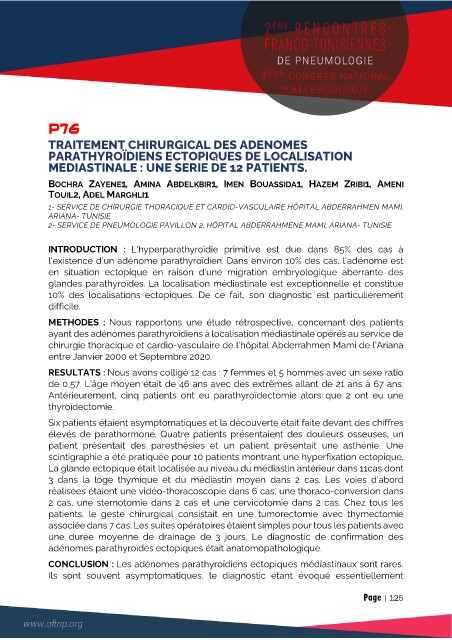 CONCLUSION : Les adénomes parathyroïdiens ectopiques médiastinaux sont rares.