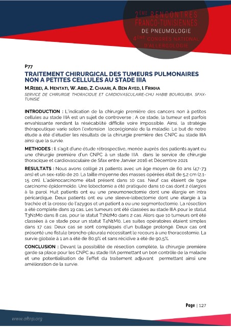 étude a été d’étudier les résultats de la chirurgie première des CNPC au stade IIIA