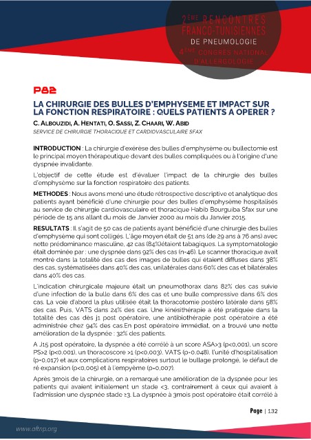 INTRODUCTION : La chirurgie d'exérèse des bulles d’emphysème ou bullectomie est