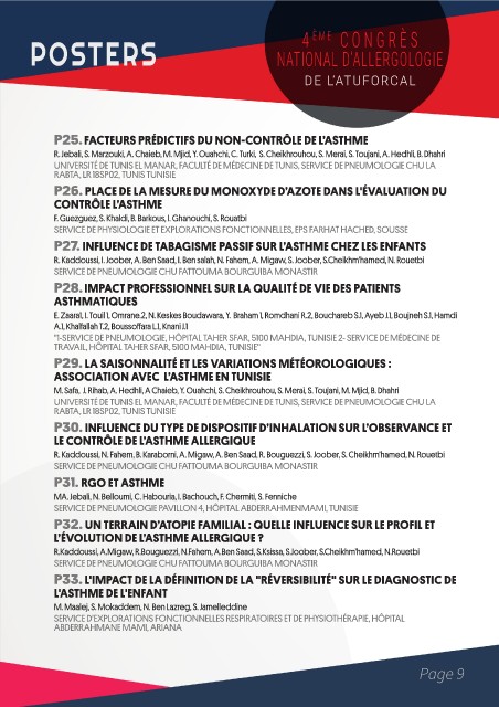 P25. FACTEURS PRÉDICTIFS DU NON-CONTRÔLE DE L’ASTHME