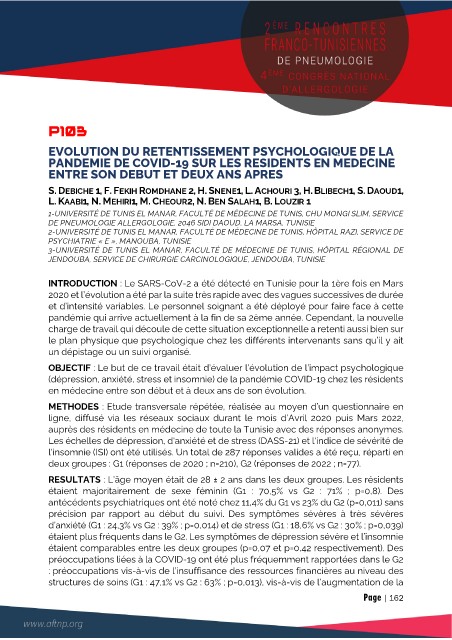 S. DEBICHE 1, F. FEKIH ROMDHANE 2, H. SNENE1, L. ACHOURI 3, H. BLIBECH1, S. DAOUD1,