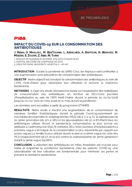 J. REBAI, O. MAALOUL, M. BENTOUMIA, L. ABDELHEDI, A. BAFFOUN, H. BENAYED, M.