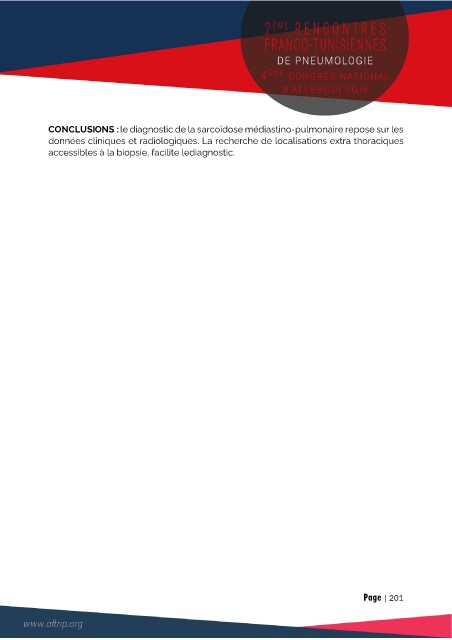 CONCLUSIONS : le diagnostic de la sarcoïdose médiastino-pulmonaire repose sur les