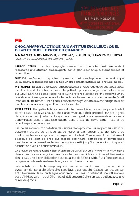 CHOC ANAPHYLACTIQUE AUX ANTITUBERCULEUX : QUEL