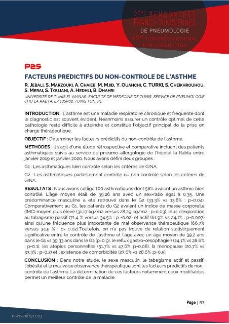 FACTEURS PREDICTIFS DU NON-CONTROLE DE L’ASTHME