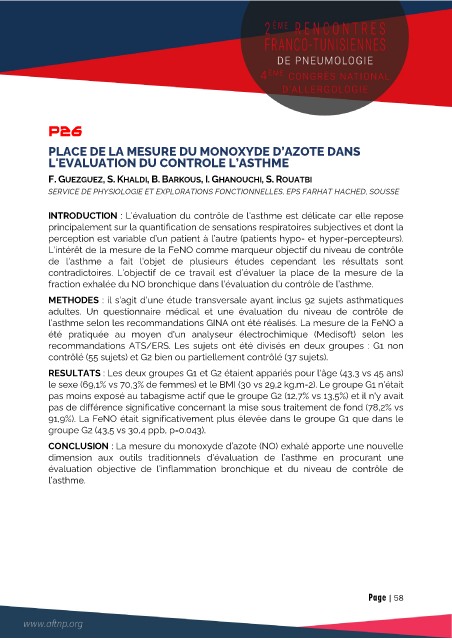 91,9%). La FeNO était significativement plus élevée dans le groupe G1 que dans le