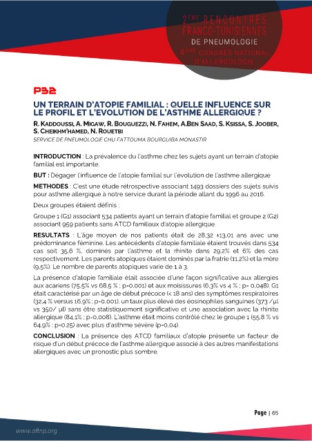 prédominance féminine. Les antécédents d’atopie familiale étaient trouvés dans 534