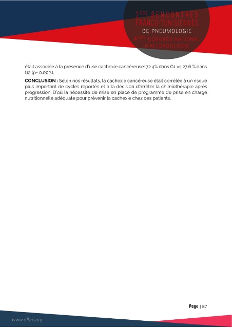 CONCLUSION : Selon nos résultats, la cachexie cancéreuse était corrélée à un risque